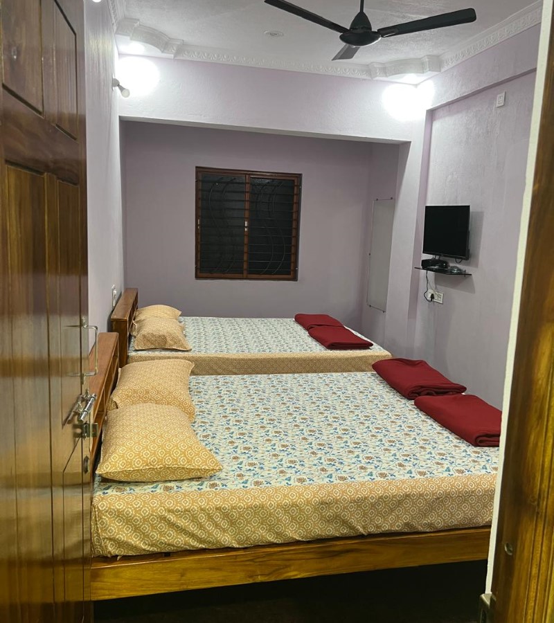 Nestled in the heart of Dharmasthala, a revered pilgrimage site in Karnataka, India, Devatha Residency offers a tranquil retreat for travelers seeking comfort and convenience. This homestay is perfectly suited for those visiting the famous Lord Shiva temple, Manjunatha Swamy Temple, or simply looking to unwind in a peaceful environment. Devatha Residency boasts a range of amenities to ensure a comfortable stay. The homestay features well-appointed rooms, each equipped with essential facilities to cater to the needs of its guests. Guests can enjoy delicious home-cooked meals, prepared with fresh ingredients and local flavors. The homestay also provides services like 24-hour front desk assistance, room service, and laundry facilities. We are one of the best lodges in Dharmasthala.